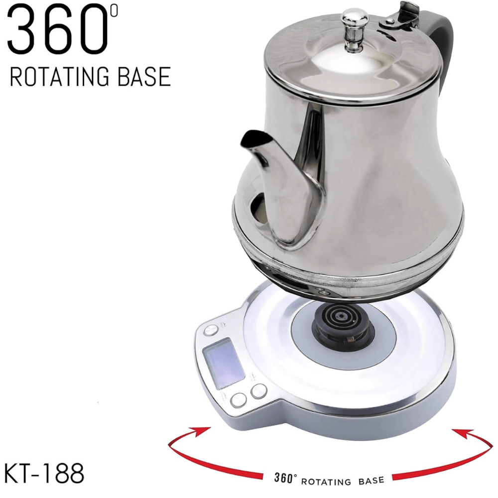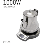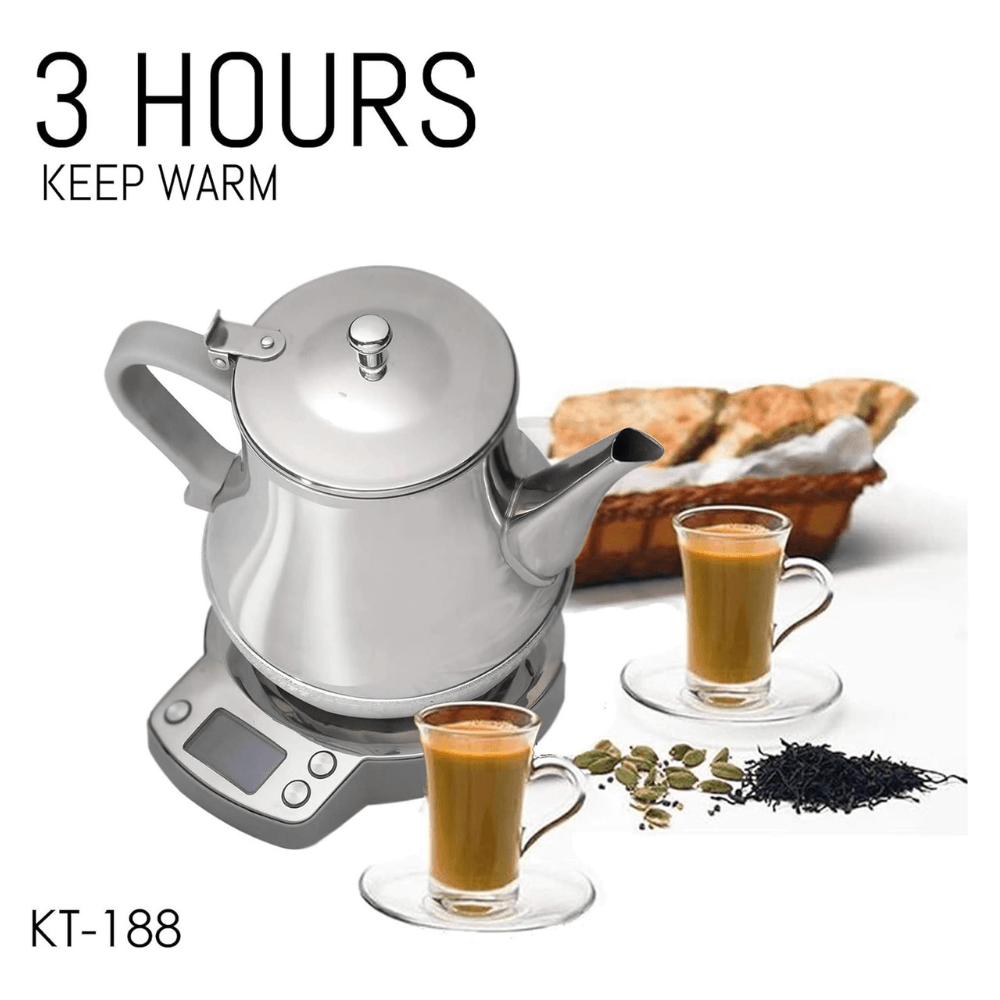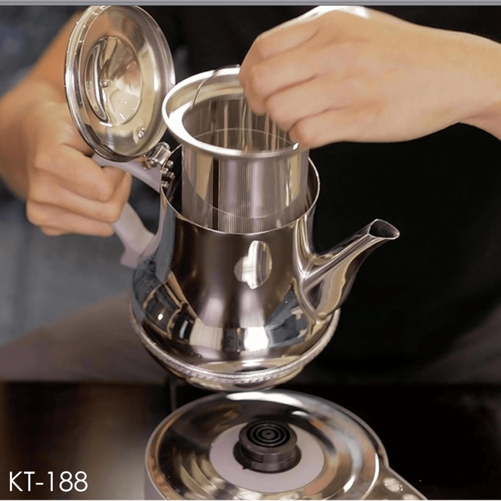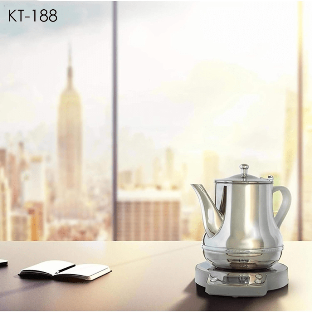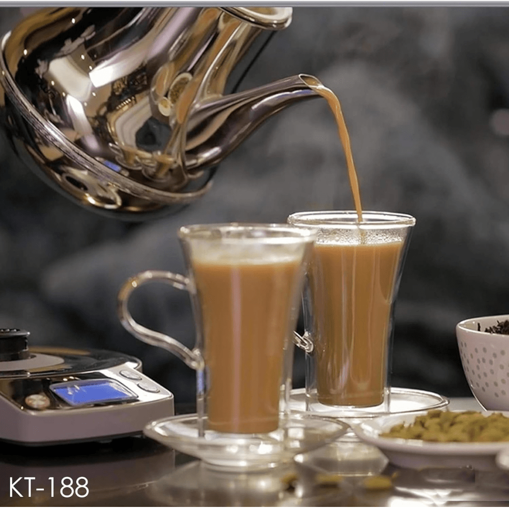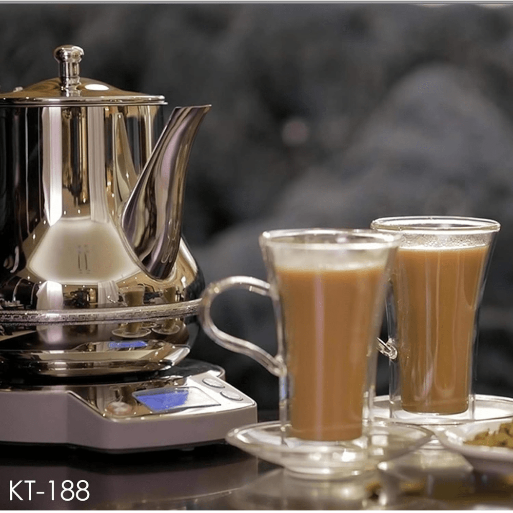 The Crownline KT-188 Karak Tea Maker in a sleek silver design redefines convenience in tea brewing. This innovative tea maker is designed to simplify the process of preparing traditional Karak tea. Compact and stylish, its dimensions of 7.2D x 11.2W x 7.6H centimeters offer a space-saving solution for modern kitchens.