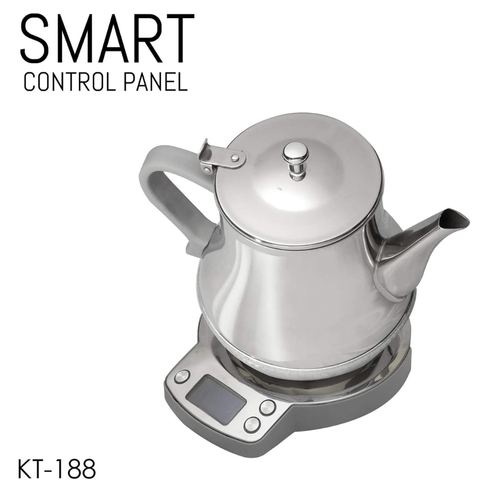 The Crownline KT-188 Karak Tea Maker in silver is a compact and innovative tea-making solution with a capacity of 0.8 liters. Featuring a smart control panel, 850-1000W power range, and voltage of 220-240V, it ensures efficient brewing for traditional Karak tea.